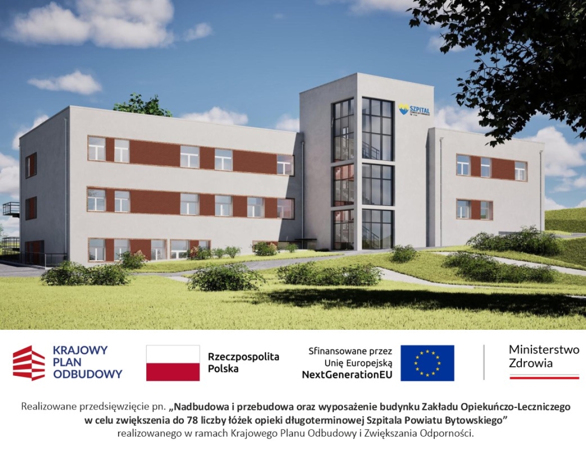 Realizowane przedsięwzięcie pn. „Nadbudowa i przebudowa oraz wyposażenie budynku Zakładu Opiekuńczo-Leczniczego w celu zwiększenia do 78 liczby łóżek opieki długoterminowej Szpitala Powiatu Bytowskiego" realizowanego w ramach Krajowego Planu Odbudowy i Zwiększania Odporności.