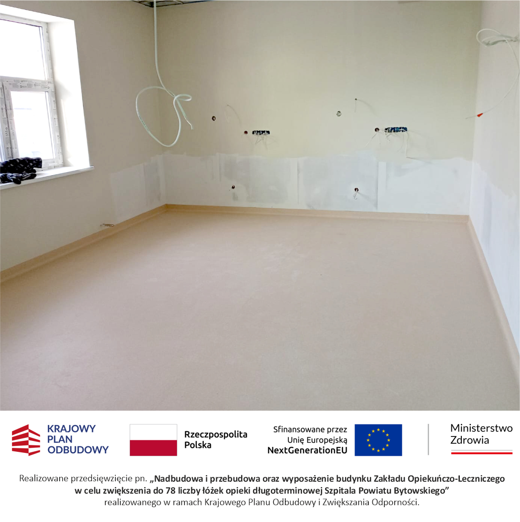 Realizowane przedsięwzięcie pn. „Nadbudowa i przebudowa oraz wyposażenie budynku Zakładu Opiekuńczo-Leczniczego w celu zwiększenia do 78 liczby łóżek opieki długoterminowej Szpitala Powiatu Bytowskiego sp. z o.o." realizowanego w ramach Krajowego Planu Odbudowy i Zwiększania Odporności. Ministerstwo Zdrowia