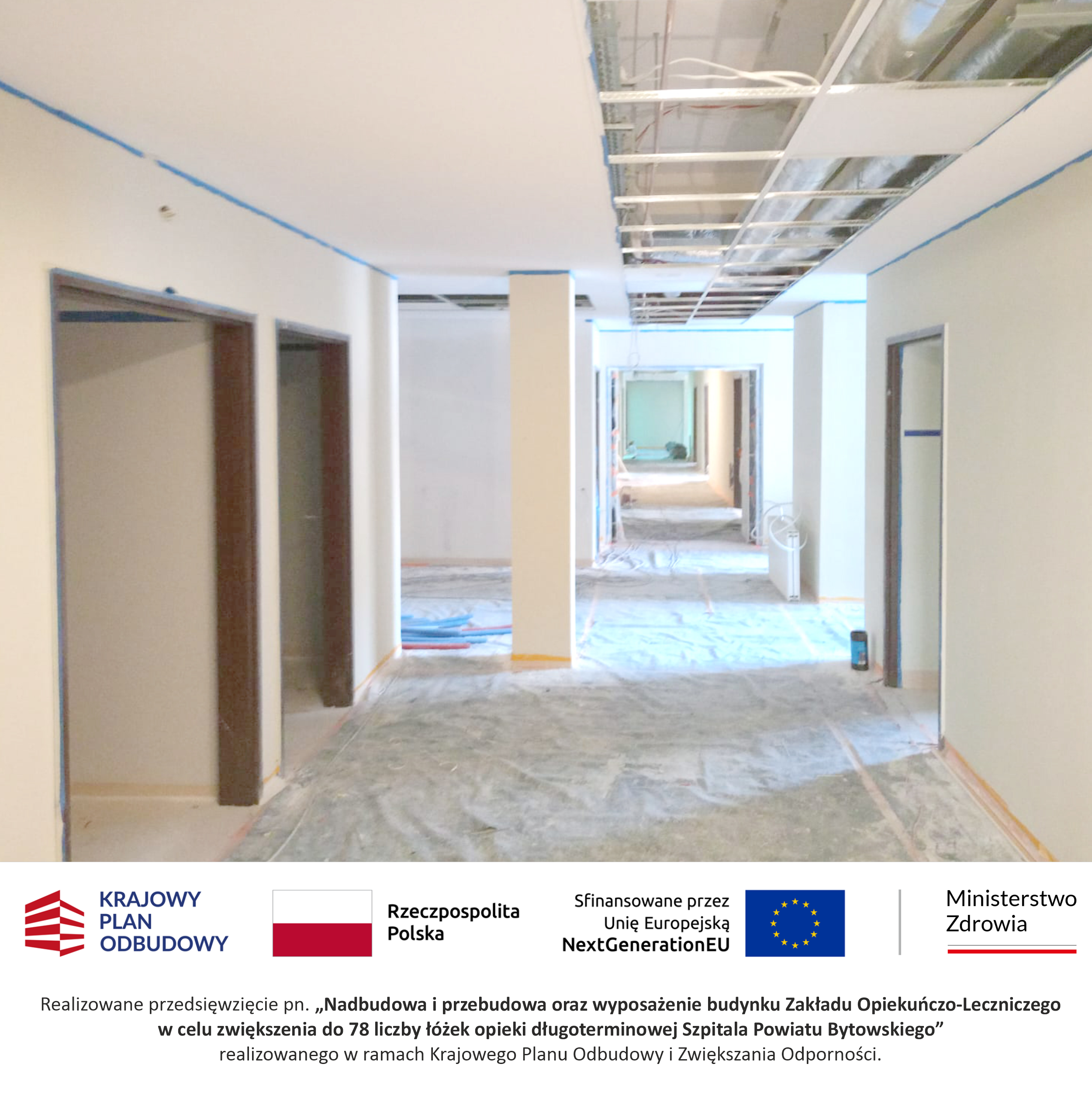 Realizowane przedsięwzięcie pn. „Nadbudowa i przebudowa oraz wyposażenie budynku Zakładu Opiekuńczo-Leczniczego w celu zwiększenia do 78 liczby łóżek opieki długoterminowej Szpitala Powiatu Bytowskiego sp. z o.o." realizowanego w ramach Krajowego Planu Odbudowy i Zwiększania Odporności.